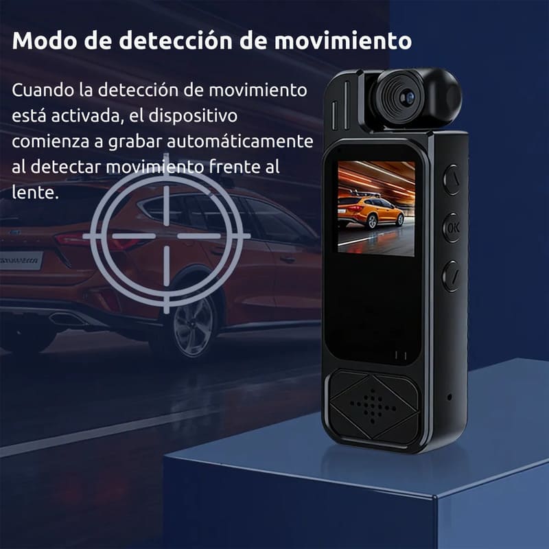 Activa la grabación automáticamente cuando detecta movimiento, capturando solo lo importante sin que tengas que intervenir. Ideal para usar como cámara de seguridad en viajes, estacionamientos o durante recorridos, optimizando memoria y batería mientras vos te ocupás de disfrutar el camino.