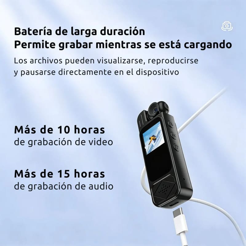 Con apenas 97 mm de largo y 54 g de peso, entra fácilmente en bolsillo, riñonera o mochila de viaje. Es compacta, discreta y perfecta para quienes quieren documentar sin cargar equipos grandes.