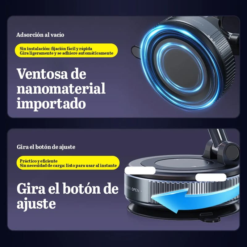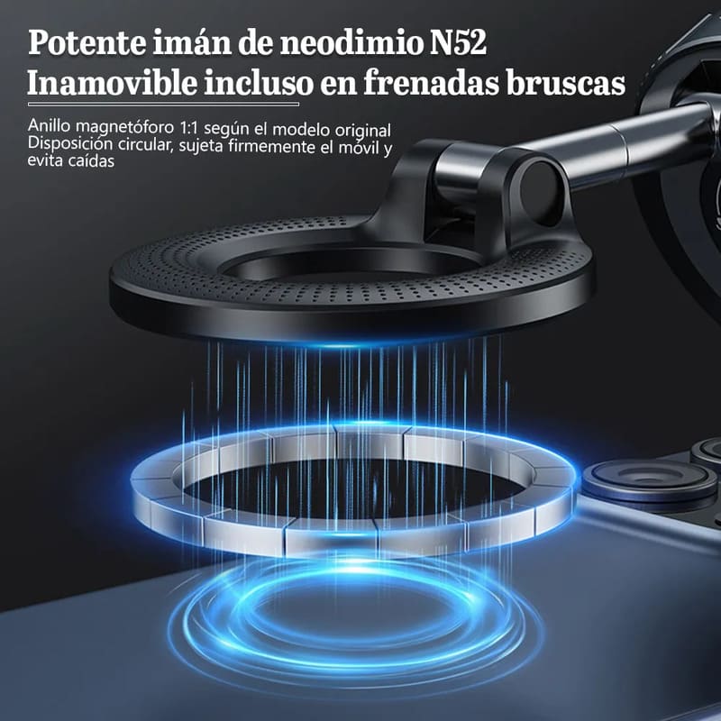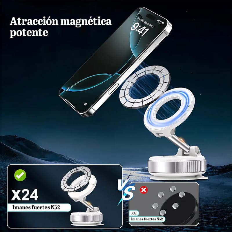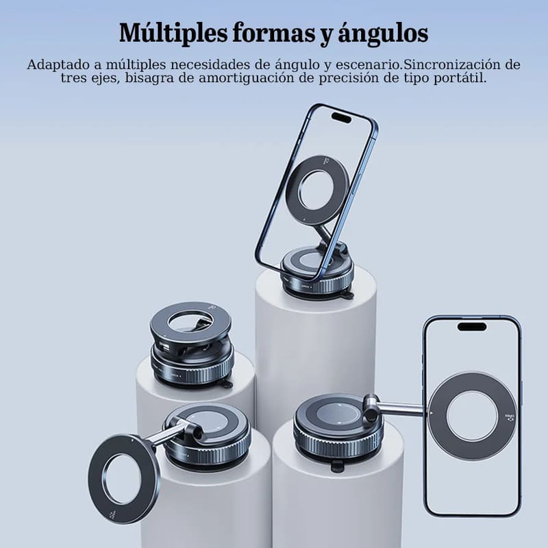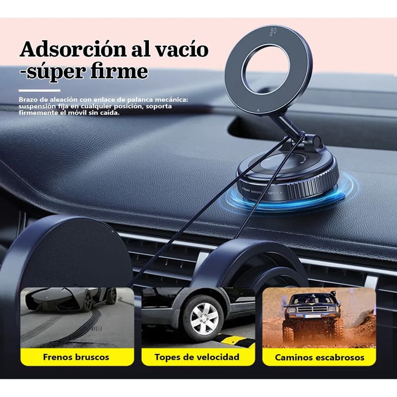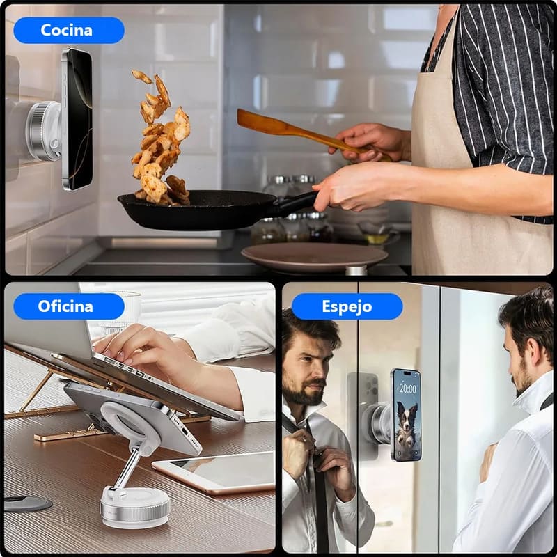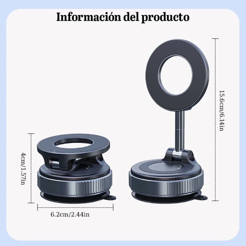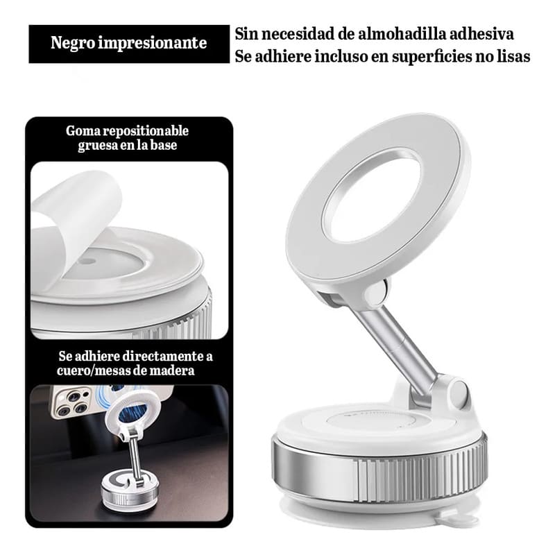 Soporte celular magnético con giro 360°, diseño plegable y ventosa de vacío ultra firme. Ideal para auto, oficina o cocina, ofrece máxima estabilidad y compatibilidad con todo tipo de celulares.